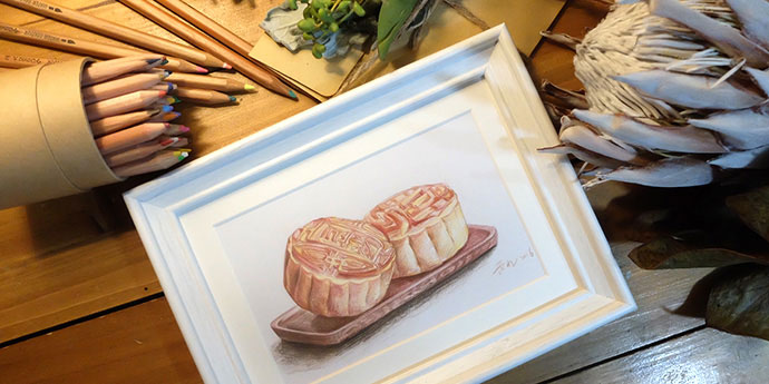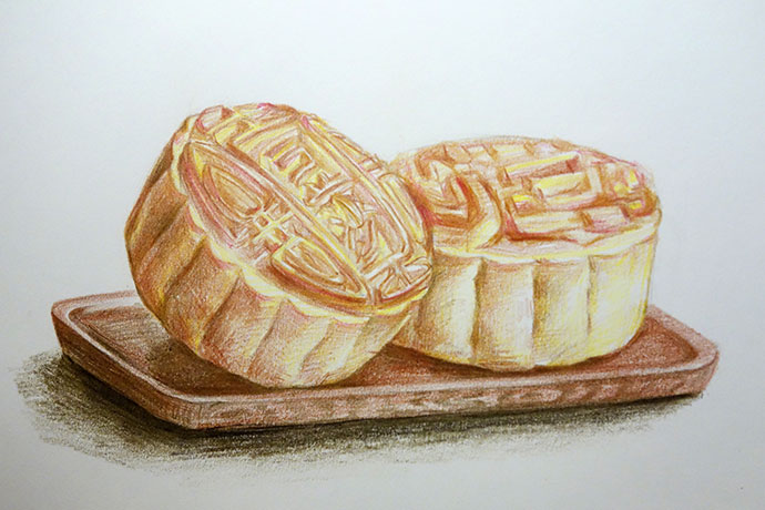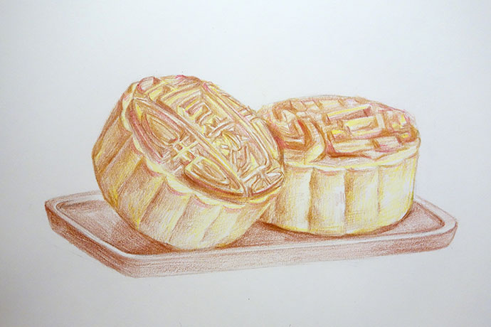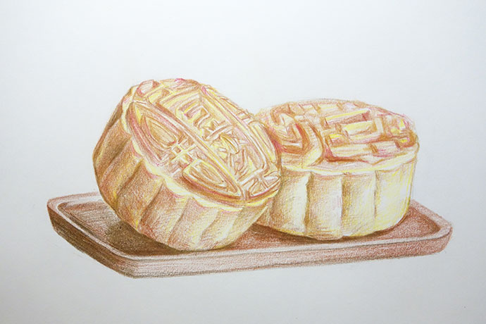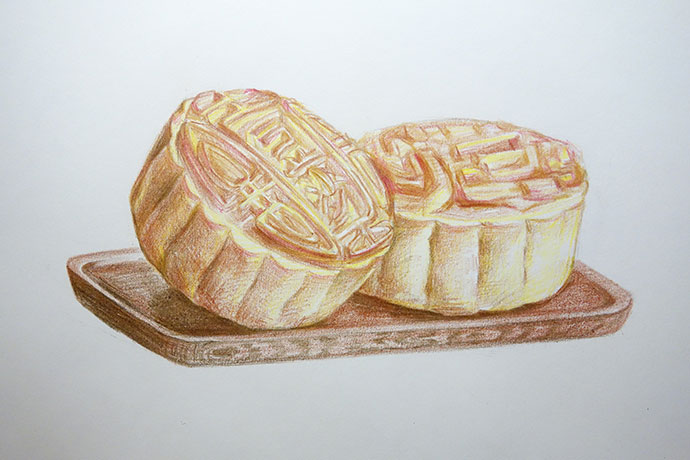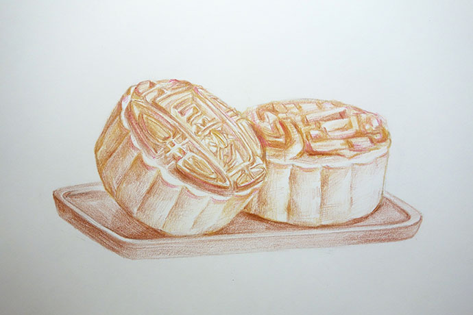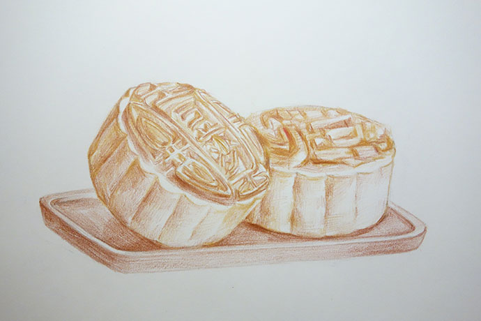 线稿:用铅笔画出月饼的线稿,注意月饼表现的图案要耐心的画哦,虽然我已迷失~