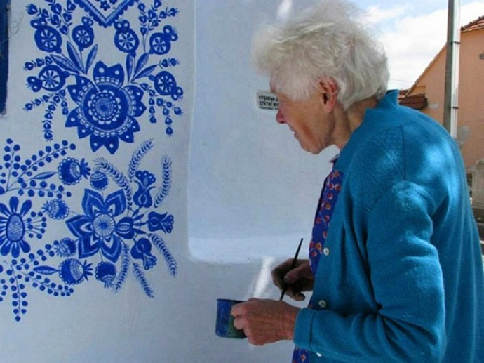 Anežka Kašpárková住在捷克南部的一个小村庄里,如今她已经91岁高龄了,每年的春天和夏天,她都会花一些时间在村庄各处的墙壁上画画,我们可以叫她安妮卡奶奶。
